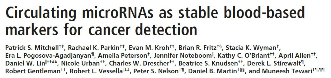 血液中に放出されたマイクロRNAの変化を検出することで がんの早期発見が可能となります。